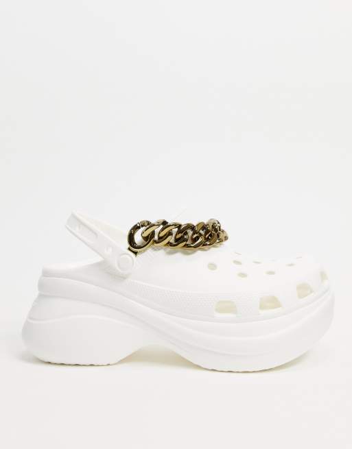 Crocs bae platform shoes with gold chain detail in white rare size 7 hype beast.